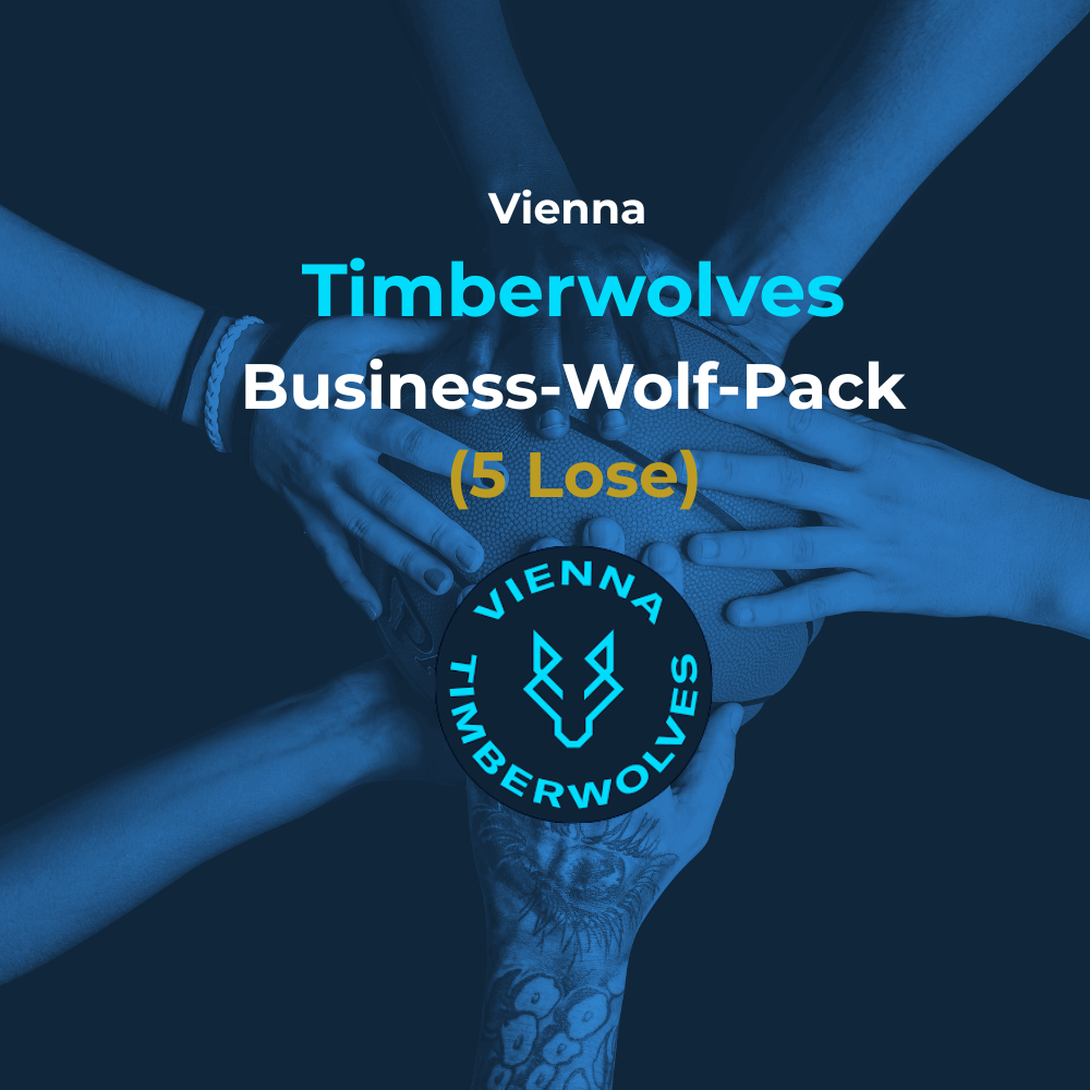 Mit dem Business-Wolf-Pack erhalten Sie fünf Lose auf einmal und erhöhen damit Ihre Gewinnchance auf das Trikotsponsoring der Damen- und Herrenmannschaft im Wert von 40.000€ um das Fünffache. Zusätzlich profitieren Sie von erweiterten Leistungen und mehr Sichtbarkeit im Umfeld der Vienna Timberwolves.